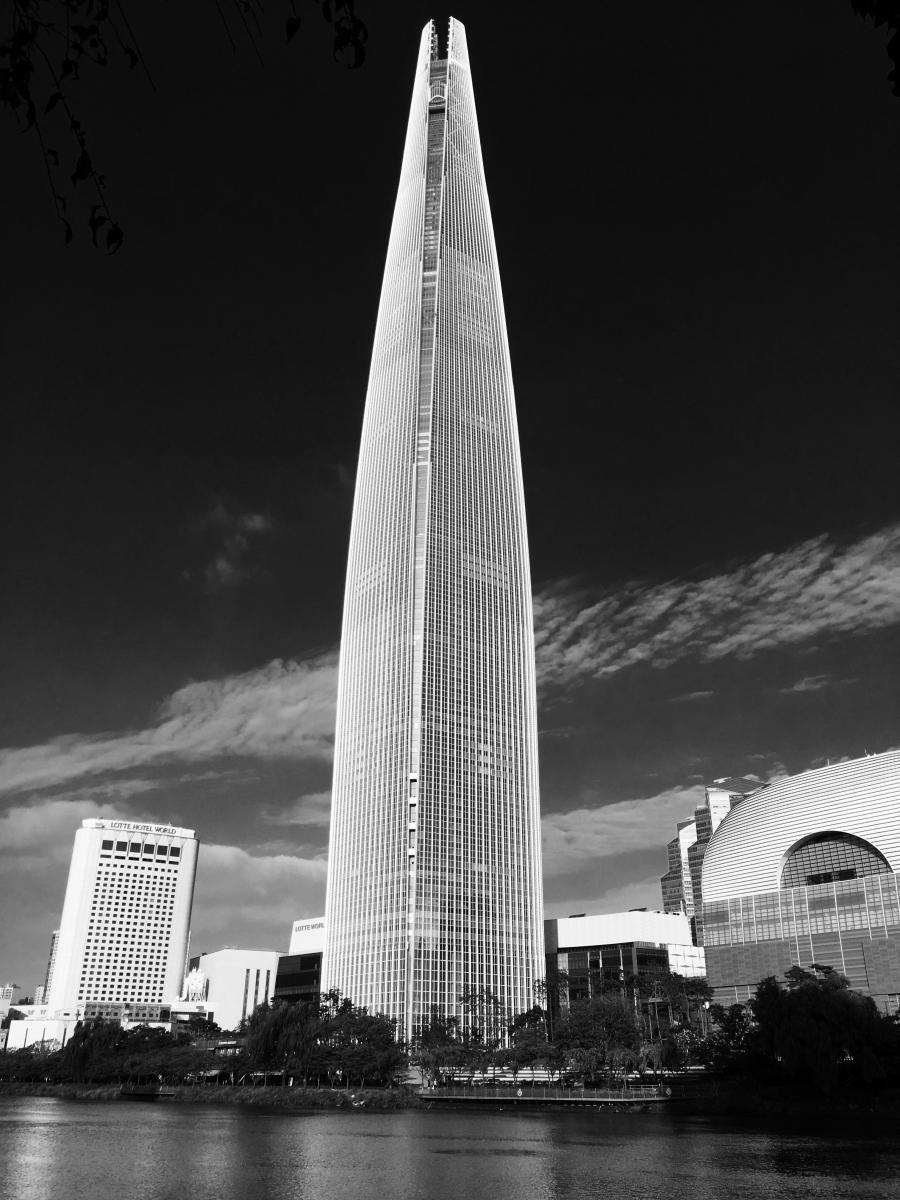 The Lotte Super Tower 123, so named due to its height of 123 stories, will be built over a transportation hub near the Han River in the Jamsil shopping and entertainment section of Seoul, South Korea. The light-toned glass and metal-accented structure blends a modern aesthetic with historic Korean art forms such as ceramics, porcelain, and calligraphy. If completed as planned, it will be the world's second tallest building behind the 2,684-foot tall Burj Dubai in Dubai, UAE.
